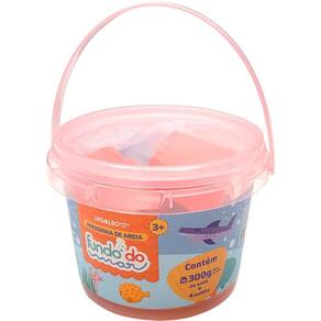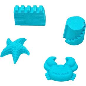 Acompanha 300g de areia na cor azul + 4 acessórios com tema fundo do mar