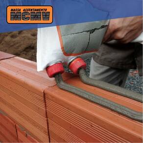 Características A Massa de Assentamento MCMV foi desenvolvida para assentamento de tijolos e blocos, reduzindo o custo de aplicação e o peso da obra, obtendo maior rapidez na execução, sem desperdícios e sujeira. A Massa de Assentamento MCMV é um produto cimentício, inodoro, não tóxico, apresentado na cor cinza, com ótima aderência, boa trabalhabilidade, resistente à alcalinidade, conferindo-lhe excelente durabilidade.