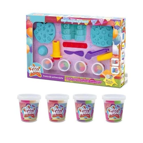 Massa De Modelar Festa de Aniversário Divertoys Ref.8279Transforme a brincadeira em uma verdadeira celebração com o kit Diver Massa Festa de Aniversário da Diver Toys! Este incrível conjunto tem tudo que você precisa para organizar uma festa de aniversário perfeita para você e seus amigos, estimulando a imaginação e a criatividade das crianças.Características:EAN: 7898639382795Marca: DivertoysModelo: Ref.8279Idade Recomendada: +3 Anos04 Potes de massinha com 3 coresComposição: Termoplásticos e massinhasRegulamentação Inmetro: 003808/2022Acompanha:Forminha de boloRolinho e faca sem cortePegador e forminhasForminhas com molde de biscoitinhos e frutinhasSeringa com 4 bicos diferentesDimensões da Embalagem:Altura: 9cmLargura: 43cmProfundidade: 29cmPeso: 0,600KgGarantia: 3anos