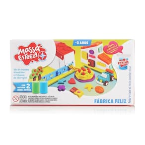 Massa Estrela Fábrica Feliz É a fábrica de alegria! Vem com uma prensa com 14 moldes diferentes e acompanha 2 réguas com mais de 10 aberturas diferentes para a criança se divertir! Acompanham 2 potes de 100g cada. Produto indicado para crianças a partir de 3 anos. Idade recomendada (RECOMMENDED_AGE_GROUP): + 3 anos | Código Inmetro: 001 793 / 2020 Ean: 7896027533194