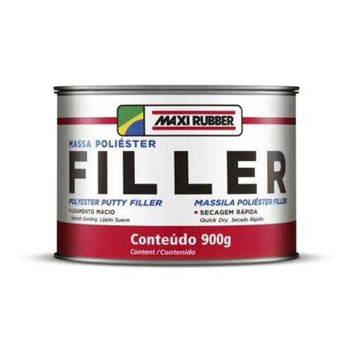 Massa Poliester Filler 900gMaxi Rubber Indicado para corrigir imperfeições em superfícies metálicas ferrosas Galvanizadas, Zincadas e Alumínio e fibra de vidro. Dicas O produto deve ser aplicado direto sobre chapa nua. Na preparação da massa catálise utilizar a quantidade correta de catalisador 1% , evitando assim problemas como, por exemplo, sangramento. Não recoloque na lata a mistura já preparada. Aguardar o tempo de secagem recomendado, para evitar mapeamento. Evitar a secagem forçada em temperaturas elevadas, pois pode causar trincas, bolhas e perda de adesão. Não é recomendado o lixamento úmido do adesivo, pois a umidade retida no adesivo durante o lixamento com água pode causar problemas na superfície e no acabamento. Isolar o local do reparo com Primer PU Maxi Rubber antes da aplicação do acabamento. Rendimento 0,59 m/kg Composição Massa Poliéster: Resina de poliéster, pigmentos, cargas e aditivos. Catalisador: Peróxido de benzoila e plastificantes.