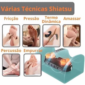 De Pés Shiatsu Shia Foot Bivolt 110V/220V Shiatsu para Pés e Pernas com 2 Motores Rotativos O Shiatsu de Pés oferece uma massagem profunda e relaxante, aliviando dores e tensões musculares com eficácia. Seu design anatômico permite o uso confortável tanto nos pés quanto nas pernas, proporcionando um relaxamento completo. Equipado com internas, ele promove um alívio instantâneo ao combinar movimento rotativo com leve aquecimento, ativado após 5 minutos de uso somente nas , sem emissão de vapor . Para garantir a segurança, o possui um dispositivo de proteção contra superaquecimento e um sistema de desligamento automático após 15 minutos de uso. Aconselha-se a evitar a aplicação de peso excessivo sobre o aparelho, já que isso pode prejudicar o funcionamento das internas. O uso adequado proporciona uma experiência de relaxamento ideal. Principais Benefícios: Massagem Shiatsu profunda e eficaz nos pés. Design anatômico que garante conforto durante o uso. Leve e silencioso, ideal para uso em casa ou no escritório. internas que promovem relaxamento muscular. Equipado com 2 motores rotativos super silenciosos. Pode ser utilizado tanto nos pés quanto nas pernas. Fácil de limpar e manter. 3 níveis de intensidade ajustáveis. Leve aquecimento nas após 5 minutos de uso. Indicações de Uso: Relaxamento e alívio da tensão muscular. Alívio de dores nos pés e pernas. Melhora da circulação sanguínea. Especificações Técnicas: Modelo: Shiatsu. Alimentação: Bivolt 110v/220v . Dimensões: 30 cm x 19 cm x 14 cm. Peso: 1,3 kg.