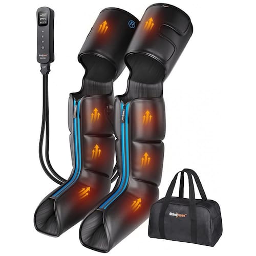 Este massageador de pernas com compressão de ar possui 12 câmaras de ar de massagem integradas, massagem envolvente de 360 graus para toda a perna, do pé à panturrilha e à coxa, 3 modos e 3 intensidades que proporcionam várias experiências de massagem, além de 3 níveis de aquecimento (temperatura constante) que podem ser desligados.