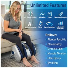 Massageador para pés, pernas, tornozelos e panturrilhas este massageador de pés elétrico faz tudo. O massageador fornece uma técnica de shiatsu de amassamento profundo que melhora a circulação, o fluxo sanguíneo para aumentar a recuperação muscular e ajudar a reduzir a inflamação. Equipado com bola de rotação, bastão rolante, terapia de calor, compressão de ar para o máximo relaxamento e recuperação. Alívio puro e cobertura completa a barra ajustável recém projetada permite uma massagem completa de seus pés, tornozelos, pernas, panturrilhas, arco e calcanhares. Com um controle remoto sem fio incluído, você pode ajustar facilmente as configurações de conforto sem ter que se curvar. Aliviar fascite plantar, neuropatia, neuropatia diabética, dor crônica, má circulação e muito mais. Níveis de intensidade ajustáveis Com o painel de controle bem projetado e o controle remoto sem fio, você pode escolher facilmente entre 5 configurações de pressão, 3 modos de massagem, função de balanço, função de amassamento profundo e terapia de calor enquanto posiciona a barra em seu ângulo preferido. Uso recomendado Recomendamos começar no nível de pressão 1 por cerca de 15 minutos por dia até que você comece a se acostumar com a experiência do massageador. Você pode sentir um pouco dolorido após os primeiros usos, mas é assim que você sabe que está funcionando Marca: Não Informado