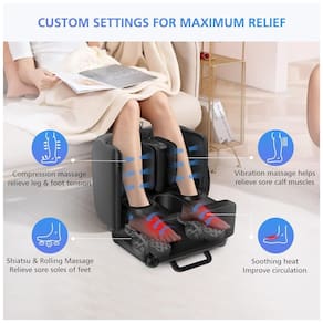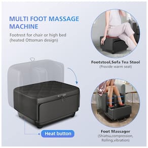 Design otomano aquecido exclusivo, massageador de pés e panturrilhas Comfier pode ser dobrado para ser um descanso de pé otomano de luxo para sala de estar em casa. Ele pode manter seus pés e pernas para cima, o que faz você se sentir mais confortável. A superfície do pufe tem uma função de aquecimento opcional que oferece um assento quente perfeito, também ajuda a aquecer e relaxar seus pés e pernas, enquanto você trabalha no escritório ou em casa. Pés de massagem, tornozelos e panturrilhas, relaxe todo o corpo, a máquina de massageador de pés Comfier vem com funções de shiatsu, compressão, vibração e calor, proporcionando a você experiências de massagem abrangentes ideais. Modos de massagem e níveis de intensidade selecionáveis Três opções de intensidade de compressão integradas com modos de massagem de 2 pernas permitem que você desfrute de uma massagem relaxante extrema na panturrilha com um massageador de panturrilha mais confortável. Faça uma massagem profunda na parte inferior dos pés enquanto o massageador da panturrilha pressiona a parte superior dos pés e os dois lados das panturrilhas. Barra de suporte ajustável e fácil de limpar Puxe a barra de suporte na parte inferior do massageador de pés para obter um ângulo de massagem confortável de 20 graus inclinado. Este massageador de pés e panturrilhas com calor e compressão vem com capas de pés removíveis e laváveis que são fáceis de manter limpas para uso saudável por membros da família Marca: Não Informado