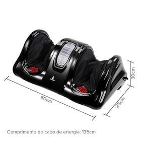 Depois de um dia cansativo, nada melhor do que relaxar com o Massageador para Pernas e Pés Lorben sem precisar sair do conforto de sua casa.Seus movimentos ordenados aliviam o cansaço das pernas e pés, e é possível escolher a intensidade, direção, velocidade e a região em que a massagem será aplicada. Simulando técnicas de reflexologia e atingindo cada ponto dos seus pés, ele oferecendo máxima sensação de bem estar, ajudando a eliminar toxinas e melhorando a microcirculação. Massageia os pés e pernas, mas reflete em todo o corpo.Com painel de funções sensível ao toque e controle remoto para maior comodidade.Fácil de transportar para que você possa tê-lo à mão sempre que quiser, até mesmo em viagens. Você mais relaxado e pronto para encarar qualquer desafio!Marca: LorbenMaterial: Plástico e PVCPotência: 40WVoltagem: 110V - 250V AC 50HzTemperatura de operação: +10°C ~ 40°CIntensidade: 4 níveisComprimento do cabo de energia: 135cmTempo estimado de funcionamento: 10 a 15 minutosInclui:1 Massageador para pernas e pés1 Controle remotoCONSERVAÇÃO DO PRODUTO:Antes de armazenar, limpe o massageador com pano seco. Não utilize produtos solventes na limpeza. Tamanho do produto: 60x25x30cmPeso do produto: 5,505kgTamanho da embalagem: 64x39x29,5cmPeso da embalagem: 6,335kgCódigo do produto: GT6154Imagens ilustrativas. As tonalidades podem variar.