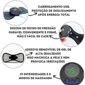 Apresentamos o elétrico com pulsos de eletroestimulação, um equipamento que pode ser seu aliado na busca por uma vida mais saudável. Com ele, você poderá aliviar dores crônicas e auxiliar na recuperação muscular após atividades físicas intensas. Além disso, seu uso regular pode ajudar na melhora do tônus e firmeza da musculatura. Com design ergonômico e fácil de usar, este elétrico é a escolha ideal para quem busca conforto, praticidade e qualidade de vida. Adquira já o seu e experimente os benefícios que ele pode trazer para o seu dia a dia. O elétrico portátil utiliza a tecnologia ems eletroestimulação muscular e é a solução perfeita para quem busca conforto e alívio de dores musculares no final do dia. Com sua tecnologia de estimulação elétrica, ele atua na musculatura, promovendo uma sensação de relaxamento e bem-estar. Além disso, ele ainda estimula a circulação e combate dores musculares, oferecendo 8 modalidades de estimulação e 19 intensidades diferentes para atender às suas necessidades. Cuidados com o produto: - não mantenha em altas ou baixas temperaturas ou umidade ao armazenar a unidade - a sujeira pode atrapalhar o efeito do uso Modo de limpeza: - limpe o ponto sujo do com pano úmido com material neutro - limpe novamente com pano seco sem pressionar muito Itens inclusos: 1 base adesiva 1 gerador de estímulos 1 cabo usb 1 manual de instruções Especificações técnicas: - 8 modalidades - 19 intensidades - desliga automaticamente após 30 segundos sem contato com a pele - voltagem: 3,7v - saída máxima: 35maa - frequência: 1-100hz - capacidade da bateria: 200mah Pagamento Marca: Fábrica Do Micropigmentador Ean: 7906953512764