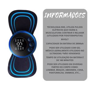 Especificações técnicas: - 8 modalidades - 19 intensidades - desliga automaticamente após 30 segundos sem contato com a pele - voltagem: 3,7v - saída máxima: 35maa - frequência: 1-100hz - capacidade da bateria: 200mah