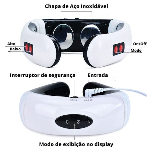 Alívio da dor pelo método de impulsos eletromagnéticos E acupuntura tens Neuroestimulação Elétrica Transcutânea . Adequado para ser utilizado em qualquer parte do corpo, possui design aerodinâmico de anel curvatura fisiológica do corpo composto de vértebra cervical este massageador portátil possui a capacidade de aliviar a dor e a tensão muscular, tudo o que você tem a fazer é sentar-se, pressionar o botão ON e deixar ele trabalhar, possui botão de intensidade ajustável que se pode ajustar, de acordo com a sua preferência. Combina impulsos elétricos de baixa frequência com calor e tecnologia de estimulação elétrica de nervos, método da acupuntura. Esses impulsos elétricos imitam a ação dos sinais enviados pelos neurônios acelerando a recuperação dos nervos e músculos. Com as contrações repetidas, o fluxo de sangue melhora, acelerando a recuperação dos músculos lesionados. Benefícios do Produto: Produto excelente para curar dores no pescoço e nas costas, produto leve e com funcionamento a pilha, da mais facilidade na hora de usar pois não possui fios, além de tratar as dores com um pulso magnético de media intensidade, terapia inspirada na acupuntura oriental. Estimula os músculos no local de aplicação para tirar as dores de forma fácil e rápida. Especificações: Pulsos de frequência: 0Hz-1000Hz Intensidade de Pulso: 20us-400us Material: abs e Metal Inoxidável. Carregamento via Pilha inclui: 01 x Massageador Pescoço 02 x Eletrodos + Cabo 02 x Pilhas aaa 01 x Manual Inglês Ean: 7898917301463