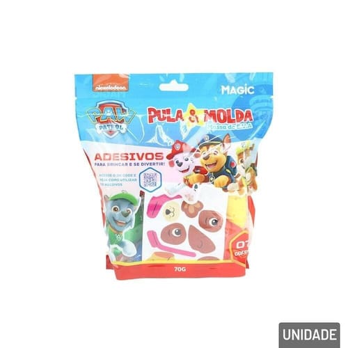 Massinha de Modelar 08 Peças Patrulha Canina Transforme a diversão em uma verdadeira missão com a nossa Massinha de Modelar 08 Peças Patrulha Canina com Adesivos! Ideal para os pequenos fãs da série, este conjunto colorido proporciona horas de criatividade e entretenimento.\nAlém das massinhas, o conjunto vem com uma cartela de Adesivos, com detalhes específicos dos personagens e itens do universo da Patrulha Canina. Seja construindo a base de uma missão ou criando novas histórias, a imaginação das crianças não terá limites!\nContém: 7 Massinhas cores, 1 Cartela de Adesivos.\nEspecificações:\nMarca : MAGIC\nTipo de material : E.V.A\nCores ou Estampa : Colorido\nDimensões do Produto : 18 X 17 X 6 CM\nDimensões da Embalagem : 18 X 17 X 6 CM\nPeso Bruto (Gramas) : 0.089