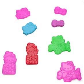 Em formato de coração, a maletinha é um kit que contém 175g de massinha divididas em 7 cores, separadas em 14 pacotinhos, 2 por cor, com mais 4 moldes exclusivos da Hello Kitty e ainda acompanha 1 ferramenta.