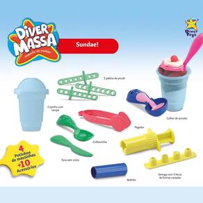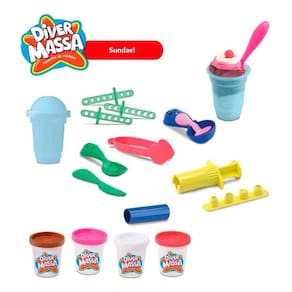 Massinha de Modelar - Diver Massa - Sundae - Divertoys: as crianças vão se divertir de montão criando seus próprios sorvetes. Esse conjunto tem tudo o que as crianças precisam para montar um delicioso sundae. A Diver Massa Sundae vem com 4 potinhos de massinha de modelar e mais de 10 acessórios diversos para estimular a brincadeira! Detalhes: • Vem com 4 potinhos 50g cada nas cores (branco, vermelho, marrom e rosa) • Acessórios: seringa com ponta aplicadora de massa, 3 palitos, colher, faca sem corte, colher pegador de sorvete, e copo sundae • Basta usar a imaginação e montar seu sorvete Informações: • Produto: Diver Massa de Modelar Sundae • Marca: Divertoys • Coleção: DiverMassa • Tipo: Kit de Massinha de Modelar com Moldes • Categoria: Artes e Atividades • Tamanho: 5,7 cm (copo) • Peso liquido: 200g (total) • Conteúdo: - 01 copinho com tampa - 01 faca sem corte - 01 colherzinha - 01 pegador - 01 colher de sorvete - 01 rolinho - 01 seringa com ponta aplicadora de massa - 03 palitos de picolé - 04 bicos de formas variadas - 04 potinhos 50g de Diver Massa • Recomendação: para crianças a partir de 03 anos de idade Especificações: • Referência: 8078 • Código de Barras: 7898639380784 • Embalagem (C x A x L): 21 x 19.5 x 07 cm • Embalagem (Peso): 0.454 kg • Material / Composição: - Cloreto de sódio, cloreto de cálcio, benzonato de sódio, dihidrogenofosfato de potássio, óleo mineral branco, essência, pigmento, farinha de trigo e água - Acessórios Injetados em PP coloridos • Registro: 003808/2022 APTA OCP0154 • Certificado: Órgãos Autorizados - OCP´S (Organismos de Certificação de Produtos) Aviso: • As imagens são meramente ilustrativas • Os pesos, tamanhos e medidas são aproximados • As cores e estampas dos produtos podem ter variações • As informações são de responsabilidade do fabricante ou fornecedor Ean: 7898639380784