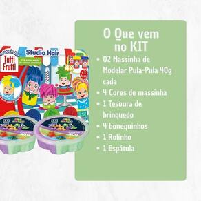 Combo criativo: massinha pula e molda + tutti frutti cabelo studio Dobre a diversão com este combo que une modelagem elástica e design de cabelos malucos - perfeito para pequenos artistas e cabeleireiros mirins Massinha pula e molda A massinha que dá vida às criações Conteúdo: - 1 pote de 40g cor - propriedade elástica exclusiva Benefícios: - efeito pula pula - diverte ao saltar quando amassada - estimula coordenação motora e criatividade 3+ anos - portátil - tamanho ideal para viagens Detalhes: - material atóxico e lavável Tutti frutti cabelo studio Salão de beleza criativo Conteúdo: - 4 bonequinhos para customizar - 4 cores de massinha para cabelos - ferramentas: tesoura, rolo e espátula - acessório especial: êmbolo para crescer cabelos Benefícios: - brincadeira temática - crie cortes extravagantes - desenvolve habilidades manuais e estéticas - peças intercambiáveis - misture com a massinha pula e molda Detalhes: - idade: 3+ anos - marca: supertoys Por que escolher este combo - atividades complementares - modelagem livre + brincadeira dirigida - texturas variadas - elástica pula x maleável tutti frutti - presente completo - desenvolve: - criatividade - coordenação motora fina - noções de estética Ideias de brincadeiras: 1.cabelos malucos - use a massinha pula para criar penteados saltitantes 2. Desfile de moda - organize um concurso de looks com os bonecos 3. Rotação criativa - 30min em cada atividade Informações importantes - armazenamento: - massinha pula: pote bem fechado - tutti frutti: manter acessórios organizados - supervisão para crianças menores de 4 anos Embalagem: - prontas para presente - cores vibrantes Dica pedagógica: Use para: - aulas de cores - misture as massinhas dos dois kits - terapia ocupacional - trabalhe movimentos de pinça com as ferramentas - festa infantil - oficina crie seu look Presenteie com um combo que transforma brincadeira em arte - perfeito para futuros estilistas Homologação Inmetro: ABCP-BRI-0240-2021 -10 Marca: Não Informado
