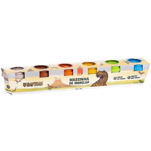 Massinha de modelar raptors dinossauros 6 potes coloridos Massinha de modelar raptors dinossauros 6 potes e cores
