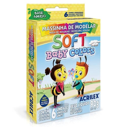 Nova massinha de modelar soft glitter caixa com 6 acrilex 07366. A base de amido, super macia, com aroma de tutti-frutti e com cores vivas e brilhantes. Para uso escolar ou entretenimento. Ideal para atividades de desenvolvimento da coordenação motora e percepção de formas. Não gruda nas mãos. Não tóxico. Não endurece e pode ser reaproveitada. Também é ótima para quem gosta de usar sua criatividade em trabalhos artesanais. Imagens meramente ilustrativas. Código de barras: 7891153097077 código de referência: 07370 marca: acrilex modelo: massinha de modelar soft baby colors 6 idade: +3 anos volume: 90 g medidas da caixa: 13x02x09 cm aproximadamente certificado: inmetro registro 000 330/2014 ocp 0098 , lacrado e com.