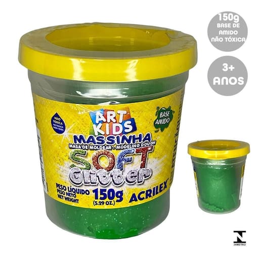 Massinha De Modelar Soft Glitter Acrilex Não Tóxica Verde