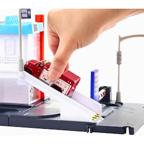 Este conjunto de brinquedos Matchbox Action Drivers Matchbox Helicopter Rescue oferece uma aventura realista dirigida por crianças em um hospital de evacuação médica com recursos ativados por carro - empurre a ambulância inclusa em escala 1:64 para frente para abrir o portão de emergência! O playset também vem com um helicóptero de plástico com hélice de giro livre e porta-carros. Conectores fáceis em cada canto permitem que o playset se conecte a outros conjuntos Matchbox, bem como a conjuntos Hot Wheels City. Cores e decorações podem variar.