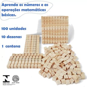 Composição: caixa medindo 12x12x5cm. Contém 111 peças. Um excelente material de apoio para o ensino da matemática. Contém: 111 peças em madeira Indicado para crianças: a partir de 05 anos Jogadores: a partir de 1 jogador Objetivo: auxiliar no aprendizado da matemática