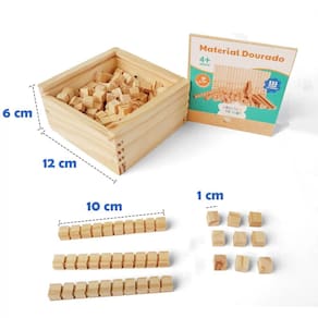 Composição: caixa medindo 12x12x5cm. Contém 111 peças. Um excelente material de apoio para o ensino da matemática. Contém: 111 peças em madeira Indicado para crianças: a partir de 05 anos Jogadores: a partir de 1 jogador Objetivo: auxiliar no aprendizado da matemática