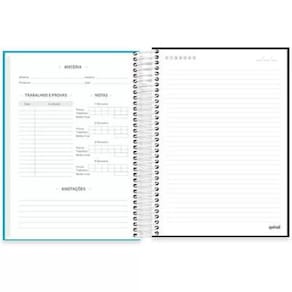 Caderno universitário capa dura com 10 matérias e 160 folhas, com opção de estampa escolhida na hora da compra.