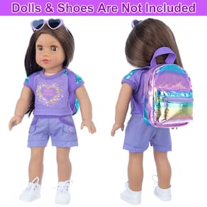 18 Inch Girl Doll Clothes and Accessories School Supplies Playset with Doll Clothes,School Bags, Sunglasses, Pencils, Pencil sharpener, Notebooks, Phone, Hair clip, Stickers and etc. Package included: (Pls kindly know that dolls and shoes are not included.) 1 doll bag, 1 doll clothes set, 1 diamond sticker, 1 toy phone, 6 pencil, 1 pencil sharpener, 2 hair ties, 1 hair clip, 1 sunglasses, 1 notebook. Condition: 100% brand new,never been played. Perfect fit 18 Inch Girl Dolls. A variety of costume not only bring much fun for girls, but also enhance children's thinking and practical ability. Let's fill your lovely girls' doll wardrobe! Ideal gift for Xmas, Children's Day, Birthday, Holiday and fun party favors to little girls, boys and doll fans. Note: Adult’s supervision is recommended in case that children put the accessory into mouth. - ?What You Get?: 17 pcs doll accessories school supplies playset (include 1 doll bag , 1 doll clothes set, 1 diamond sticker, 1 toy phone, 6 pencil, 1 pencil sharpener,2 hair ties, 1 hari clip,1 sunglasses, 1 notebook.) Pls kindly know that dolls and shoes are not included. - ? 18 Doll School Set?:The product is very suitable for 18 inch girl dolls, it is perfect choices to play as 18 inch girl doll accessories. - ?Encourages Learning and Creativity?: The 18 inch girl doll school accessories can not only bring much fun for kids, but also cultivate the children's imagination, creativity, finger flexibility and hand-eye coordination. - ?Best Gift?: An ideal gift for your children, your friends and yourself. Perfect as a Xmas gift, Birthday gift, New Year gift, party favor and other holiday gift. Kids' laugh and happiness are our passion to move ahead! Toys gifts for girls 3 4 5 6 7 8 years old. - ?Note?: We concerned your purchase experience and dedicated to your complete satisfaction.If you have any question and advice, please click your order page or go to our store homepage, click "ask a question" to contact us.