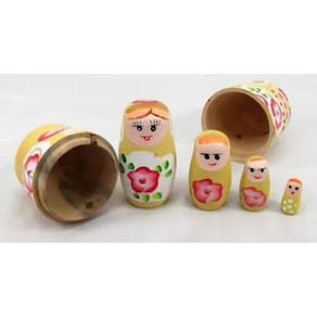 Matriosca Boneca Russa com 5 bonecas 12cm alt. Amarela Matryoshka, boneca russa é um brinquedo tradicional Da Rússia, constituída por uma série de bonecas, feitas de Diversos materiais, que são colocadas umas dentro das outras, Da maior exterior até a menor A palavra provém do diminutivo do nome próprio Matryona. A sua forma é simples, mais ou menos cilíndrica e arredondada E mais estreita na parte superior, onde se situa a cabeça da Boneca. Não têm mãos a não ser as que são pintadas na s sua s Superfície s . O grau de sofisticação das matrioscas reside, de facto, na Complexidade dos motivos pintados Temos outras cores de bonecas Antes de efetuar a compra verifique se temos a cor desejada Em estoque. Simboliza a maternidade e fertilidade Produzida em madeira