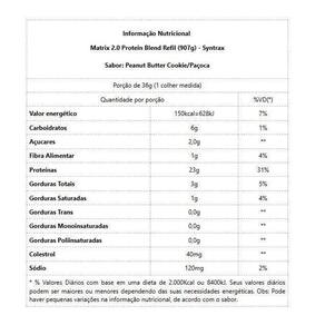 Matrix 2.0 Protein Blend Refil 907g - Sabor: Cookies e Cream Matrix 2.0 Protein Blend Refil 907g O Matrix 2.0 Sustained-Release Protein Blend da Syntrax, é uma nova proposta de blend proteico, importante para pessoas que necessitam um aporte maior de proteínas na dieta com diferentes níveis de absorção. A Caseína Micellar é uma proteína derivada do leite que, ao contrario de outras caseínas, não é desnaturada durante seu processo de obtenção, o que permite alcançar concentrações de até 80% de caseína e 20% de proteínas derivadas do soro do leite Whey Protein ; ou seja, trata-se de uma proteína pura e super concentrada que fornece excelentes quantidades de aminoácidos e por isso atua de maneira mais eficaz na nutrição das fibras musculares fornecendo substratos suficientes para sustentar a massa magra e evitar o catabolismo. O Whey Protein proteína do soro do leite , é um produto resultante da ultrafiltração, microfiltração e ionização do soro do leite, processo pelo qual consegue-se isolar a proteína solúvel do leite com mínima quantidade de lactose e gordura, obtendo-se um produto de alto valor biológico. Benefícios: Baixo teor de carboidratos; 0% de aspartame; Sabor incrível; Enriquecido com Glutamina Peptídeo; Proteína de liberação gradual 8 horas ; Liberação gradual no organismo Sustained-Release . Marca: Não Informado Ean: 810007540825