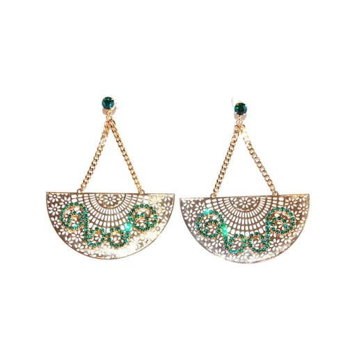 Maxi Brinco Leque com pedra Esmeralda e Strass. Ideal para festas.Especificações do produtoDimensões:Brinco: A 9 cm X L 4,5 cm Leque: A 4 cm X L 7 cmPedra: D 0,5 cmMaterial: Banhado a ouro Cor da Pedra: PretoPeso: 40 gFicha técnica- Com fecho: Sim- Tipos de pedras: Ametista- Cor principal: Dourado- Inclui estojo: Não- Unidades por kit: 02- Com pedra: Não- Material: Ouro- Cor: Dourado- Largura: 7 cm- cor: dourado- É hipoalergênica: Não- Com strass: Sim- Tipo de brinco: Solta- Tipo de fecho: De rosca- Estilos: Moderno- Formato de venda: Unidade- Comprimento: 9- Diâmetro: 7