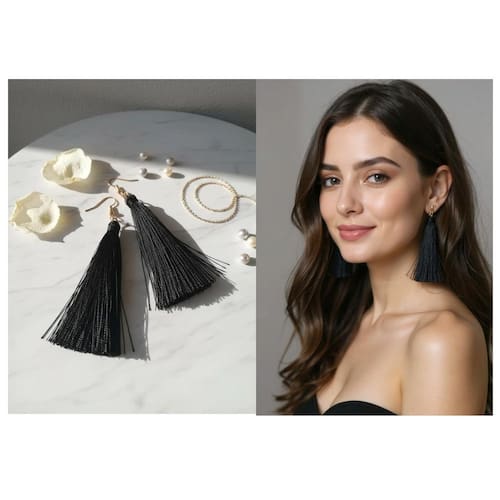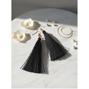 Maxi Brinco Tessel Franjinha 15 Anos Festa vassorinha Cor: Preto Brinco estilo franginha varrorinha pendurado delicado modelo 70mm Marca: Não Informado