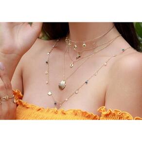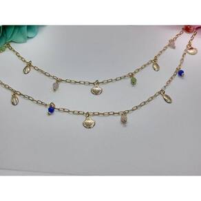 Colar banhado em ouro 18k, semi joia, com pingentes de búzios e conchas.