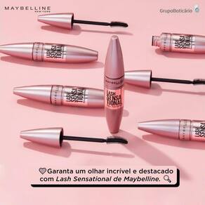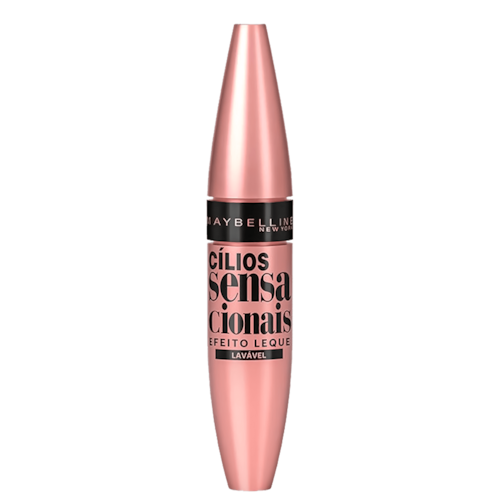 Máscara para cílios preta. Maybelline Lash Sensational define cada um dos cílios e alonga com sua fórmula lavável e de longa duração.