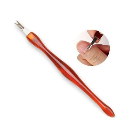 Indicação de uso: Amoleça a cutícula, empurre a cutícula com a ponta do cabo. Posicione o aparador na superfície da unha e use a ponta em V para aparar a cutícula.