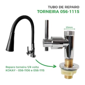Reparo completo para Torneira Kokay 056-1115. O reparo inclui, base da torneira com conexões em metal cromado, alavanca para controle do fluxo de água e anel de vedação para garantir um ajuste perfeito. Restaure o funcionamento da sua torneira de forma prática e eficiente.