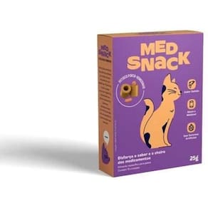 Med Snack Gatos Petisco Porta-Remedinho Sabor Salmão 25G - Frebo Administrar remédios faz parte do cotidiano de um dono de pet, mas pode ser uma tarefa bem frustrante já que os gatos costumam rejeitá-los, prejudicando seu próprio tratamento. Queremos transformar esse momento de tensão em uma experiência prazerosa pra você e seu pet. Mas como medicar gatos de um jeito fácil O MedSnack disfarça o sabor e o cheiro dos medicamentos O petisco é uma massinha moldável que esconde totalmente cápsulas e comprimidos sem corantes; indicado para gatos; altamente palatável; sabor salmão; contém 15 unidades Modo de uso: Apenas encaixe o na abertura central do MedSnack e aperte a extremidade superior para esconde-lo dentro do petisco. Pronto, já está prontinho para oferecer ao seu gato Além de ser super gostoso, tem bem menos calorias quando comparado aos alimentos humanos que são utilizados para esconder comprimidos, como queijos, salsichas e guloseimas. E o MedSnack foi desenvolvido especialmente para gatos Ingredientes: Miúdos bovinos, farinha de carne e ossos, farinha de trigo, glucose de milho, glicerol, amido de milho, óleo de soja, palatabilizante, goma xantana, sorbato de potássio e propionato de cálcio Indicação do Produto: Este snack foi desenvolvido para auxiliar na administração de medicamentos, mas pode também ser oferecido como um agrado para gatos filhotes ou adultos. Este produto não substitui o alimento completo. Uso proibido na alimentação de ruminantes. Manter em local seco e arejado e ao abrigo de luz solar. Após aberto consumir preferencialmente em 10 dias. Marca: Não Informado Ean: 0618231743582