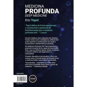 Um dos médicos mais influentes dos Estados Unidos revela como a inteligência artificial (IA) pode capacitar os profissionais da saúde e revolucionar o atendimento ao paciente. Em Medicina Profunda, Eric Topol apresenta o potencial inovador da IA, capaz de transformar tudo o que os médicos fazem, desde anotações e exames médicos até diagnósticos e tratamentos. Pioneiro, disruptivo e provocativo, o livro nos mostra como o incrível poder da IA pode tornar a medicina melhor para toda a humanidade.