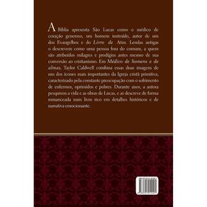 A história de uma das figuras mais importantes da Igreja cristã primitiva. Em Médico de homens e de almas, Taylor Caldwell retrata a vida e a obra de São Lucas com riqueza de detalhes em uma narrativa emocionante. A Bíblia apresenta São Lucas como o médico de coração generoso, bem instruído e autor de um dos evangelhos e do Livro de Atos. Lendas antigas o descrevem como uma pessoa fora do comum, a quem são atribuídos milagres e prodígios antes mesmo de sua conversão ao cristianismo. Em Médico de homens e de almas, Taylor Caldwell combina estas duas imagens de um dos mais importantes ícones da igreja cristã primitiva, caracterizado pela constante preocupação com o sofrimento de enfermos, oprimidos e pobres. A autora pesquisou a vida e as obras de Lucas durante anos, e as descreve de forma romanceada num livro rico em detalhes históricos e de narrativa emocionante. Lucano, ou Lucas, o único apóstolo que não era judeu, nunca viu Cristo, e tudo o que está escrito em seu Evangelho foi adquirido por meio de pesquisas e dos testemunhos da mãe de Cristo, dos discípulos e dos apóstolos. Lucas foi, antes de tudo, um grande médico, e quase todos os acontecimentos narrados neste livro são autênticos - o cenário do início da vida de São Lucas, a idade adulta e sua busca, bem como fatos relacionados à sua família. Médico de homens e de almas, a história de São Lucas, é a história da peregrinação de todos os homens através do desespero e das trevas da vida, do sofrimento e da angústia, da dúvida e do cinismo, da rebelião e da desesperança até a compreensão de Deus. "