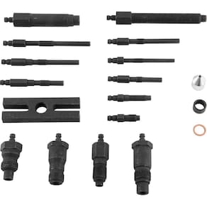 Conteúdo da embalagem: 1 Medidor de compressão. Acompanha: 1 maleta contendo 17 peças, sendo: 1 adaptador universal; 10 adaptadores para vela de aquecimento nas medidas diâm. x comp.: M10 x 1,0: 83 mm / M10 x 1,0: 91 mm / M10 x 1,0: 102 mm / M10 x 1,0: 113 mm / M10 x 1,0: 119 mm / M10 x 1,25: 64 mm / M10 x 1,25: 135 mm / M12 x 1,25: 47 mm / M18 x 1,5: 160 mm / M22 x 1,5: 118 mm; 4 adaptadores para injetor nas medidas(diâm. x comp.: M20 x 1,5: 75 mm / M22 x 1,5: 73 mm / M24 x 1,5: 88 mm / M24 x 2: 63 mm; 1 suporte H com rosca M18 x 1,5 e 1 adaptador cilíndrico.