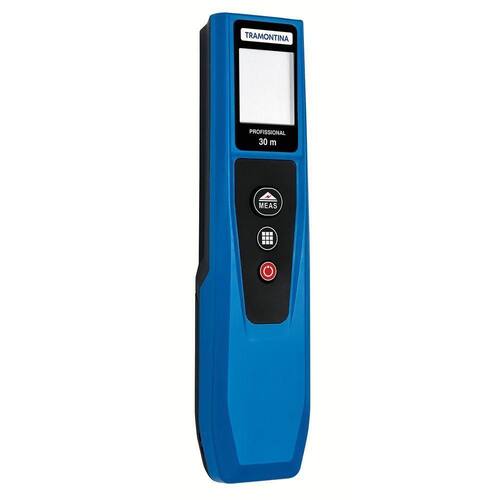 Medidor De Distância A Laser Azul 30m - Tramontina O Medidor de Distância à Laser Tramontina Master Alcance 30 m garante mais agilidade e precisão para os profissionais da construção civil, engenheiros e arquitetos. Levando mais conforto e segurança, ele possui proteção contra pó e salpicos de água. Permite o uso em 5 unidades de medida diferentes, realiza 6 tipos de medições com precisão de +/- 2,0 mm e a medição ainda pode ser feita através de 2 pontos de referência diferentes. Moderno e inovador, ele tem display com iluminação que facilita a visualização das informações em diferentes locais, e além disso, possui sinal sonoro e indicador de carga das pilhas; sendo as 2 pilhas alcalinas que acompanham o produto, muito eficientes, garantindo 10 mil medições antes da substituição. É ainda uma ferramenta muito fácil de transportar devido a alça em nylon e o estojo em lona com espaço para fixação em cintos. Um item para profissionais exigentes e preocupados em realizar suas atividades da melhor maneira possível!Faixa de medição: 0,05 - 30 metros;Precisão: +/- 2,0 mm;Resolução do display: 0,001 mTempo de resposta da medição: 0,5 segundos;Laser classe 2;Comprimento da onda do laser do medidor: 650 nm;Potência do laser:< 1 mWTamanho do ponto do laser: 25 mm à 30 m;Com classe de proteção IP54;Duração das pilhas alcalinas: 10.000 medições;Desligamento automático do laser depois de 30 segundos;Desligamento automático do instrumento em 180 segundos;Temperatura de operação: - 5C até 40C;Temperatura de armazenagem: -20C até 60C;Unidade de medida: Sistema métrico, pé, polegada milésimal, pé/polegada e polegada fracionária.Cor: Azul.Peso Produto: 0,1000 kg.Dimensões Produto (CXLXA): 20x 35x 145 mm.Fabricante: Tramontina. meli_shipping_mode - Sim Fabricante - Tramontina