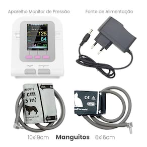 Conteúdo da Embalagem: 01 Aparelho Medidor Pressão Pet Veterinario Contec C08A-VET 01 Manguito Tamanho P 01 Manguito Tamanho M 01 Fonte de Alimentação 01 Manual de Instruções Marca: Não Informado