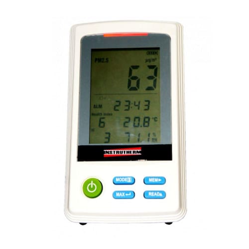 MEDIDOR DE QUALIDADE DO AR MOD. QA-100 DESCRIÇÃO: Características Medição de Finas partículas de material (PM2.5). Medição de Temperatura e Umidade. Indicador com detecção e alarme de Saúde de 0 a 9. Leitura da média de tempo medido de PM2.5. Função de Data hold e MAX/MIN com indicação de tempo. Indicação no LED de 3 cores da qualidade do ar (boa/moderada/ruim). Ponto de alarme com buzzer pré-configurado, saída de LED e alarme. Função de memória de dados manual e leitura. ESPECIFICAÇÕES TÉCNICAS: Escala de Medição: PM2.5 : 0 a 500µg/m3 Umidade : 1% a 99%U.R. Temperatura : -20? a +60? (-4? a +140?) Resolução: 0.1µg/m3, 0.1% U.R., 0.1?, 0.1? Precisão: PM2.5 : ±10% da leitura±10µg Temperatura : ±0.8?, ±1.5? Umidade : ±3%UR (em 25?, 30 a 80% UR).±5%UR (em 25?, 0 a 20% UR e 80 a 100% UR). Tipo de Sensor: PM2.5 : Sensor de Fotodiodo. Umidade : Sensor preciso de capacitância Temperature : Sensor Termistor Tempo de Resposta: Umidade : 45%U.R. a 95% U.R. <= 1min 95%U.R. a 45%U.R. <= 3min Temperatura : 10?/2 sec.v •Taxa de Amostragem: 1 amostra/segundo. Capacidade da Memória: 39 medições. (lidas diretamento do display) Capacidade do Datalogger: Cartão microSD de 4GB Temperatura e Umidade de Operação: 0? a 60?, abaixo de 95% U.R. Temperatura e Umidade de Armazenamento:-10? a 60?, abaixo de 70% U.R. Alimentação:4x 1.5V LR-6/AA ou adaptador AC Duração da Bateria: Aprox. 8 horas Dimensões:165mm(C)×93mm(L)×75mm(A) , (6.5”C×3.7”L×3”A) Peso:Aprox. 380g (13.4oz) ACESSÓRIOS FORNECIDOS: Manual de instruções, 4 pilhas “AA” de 1,5 V AC Adaptador DC 6 V 1000 mA.