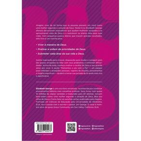 Imagine viver de tal forma que as pessoas pensem em você como uma mulher segundo o coração de Deus. Neste livro, Elizabeth George oferece devocionais inspiradores que ajudam mulheres ocupadas a se aproximarem mais de Deus e a realizarem os planos dele para suas vidas. Com pequenos passos diários que trazem grandes resultados, este livro é um convite para: • Viver à maneira de Deus. • Praticar a ordem de prioridades de Deus. • Submeter cada área da sua vida a Deus. Ganhe inspiração para crescer, disposição para mudar e coragem para dar passos arrojados ao lidar com seus problemas e enfrentar dificuldades. Acima de tudo, conheça melhor o caráter de Deus e seu grande amor por você. A seção “Momentos a sós com o Pai” — um espaço para reflexões e anotações pessoais, registro de orações, pensamentos e insights espirituais — ajudará a tornar sua jornada de fé ainda mais rica e significativa. Elizabeth George é uma escritora renomada, reconhecida por combinar ensinamentos bíblicos com conselhos práticos. Seus livros, com quase 10 milhões de cópias vendidas e traduzidos para 20 idiomas, incluem best-sellers como Uma mulher segundo o coração de Deus , Bela aos olhos de Deus e Como fazer as escolhas certas , publicados pela Hagnos. Formada em Ciências da Educação pela Universidade de Oklahoma, EUA, ela é casada com o escritor e pastor Jim George. O casal é membro ativo da igreja Grace Community em Sun Valley, Califórnia. Marca: HAGNOS*