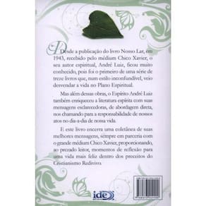 Desde a publicação do livro Nosso Lar, em 1943, recebido pelo médium Chico Xavier, o seu autor espiritual, André Luiz, ficou muito conhecido, pois foi o primeiro de uma série de treze livros que, num estilo inconfundível, veio desvendar a vida no Plano Espiritual. Mas além dessas obras, o Espírito André Luiz também enriqueceu a literatura espírita com suas mensagens esclarecedoras, de abordagem direta, nos chamando para a responsabilidade de nossos atos no dia-a-dia de nossa vida. E este livro encerra uma coletânea de suas melhores mensagens, sempre em parceria com o grande médium Chico Xavier, proporcionando, ao prezado leitor, momentos de reflexão para uma vida mais feliz dentro dos preceitos do Cristianismo Redivivo.