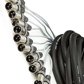 Medusa montada pela Cirilo Cabos com conectores Combo, marca própria. A vantagem do combo é poder plugar dois tipos distintos de conectores, o XLR e o P10 plug banana. Na ponta dos cabos vão conectores XLR macho. Este produto é ideal para transmissão de som profissional, sem prejuízos na qualidade ou interferência de ruídos externos.