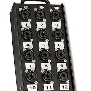 A banheira da Cirilo Cabos feita em metal com pintura epóxi preto, tem uma alça para facilitar o transporte. O cabo espaguetado e numerado via-a-via orienta na usabilidade do produto. Na extremidade do multicabo, tem uma mola de proteção. Esta caixa de conectores é resistente e durável, suporta o ritmo de trabalho de quem produz engenharia sonora.