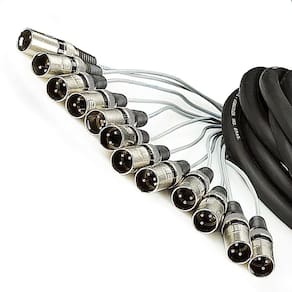 Medusa montada pela Cirilo Cabos com conectores Combo, marca própria. A vantagem do combo é poder plugar dois tipos distintos de conectores, o XLR e o P10 plug banana. Na ponta dos cabos vão conectores XLR macho. Este produto é ideal para transmissão de som profissional, sem prejuízos na qualidade ou interferência de ruídos externos.