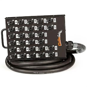 Medusa montada pela Cirilo Cabos com conectores Combo, marca própria. A vantagem do combo é poder plugar dois tipos distintos de conectores, o XLR e o P10 plug banana. Na ponta dos cabos vão conectores XLR macho. Este produto é ideal para transmissão de som profissional, sem prejuízos na qualidade ou interferência de ruídos externos.