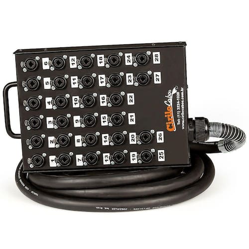 Medusa montada pela Cirilo Cabos com conectores Combo, marca própria. A vantagem do combo é poder plugar dois tipos distintos de conectores, o XLR e o P10 plug banana. Na ponta dos cabos vão conectores XLR macho. Este produto é ideal para transmissão de som , sem prejuízos na qualidade ou interferência de ruídos externos.