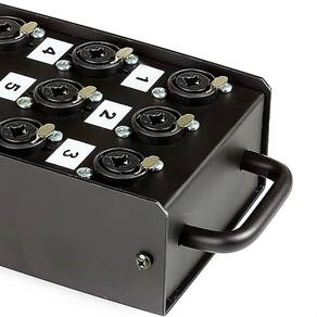 A banheira da Cirilo Cabos feita em metal com pintura epóxi preto, tem uma alça para facilitar o transporte. O cabo espaguetado e numerado via-a-via orienta na usabilidade do produto. Na extremidade do multicabo, tem uma mola de proteção. Esta caixa de conectores é resistente e durável, suporta o ritmo de trabalho de quem produz engenharia sonora.