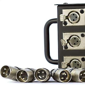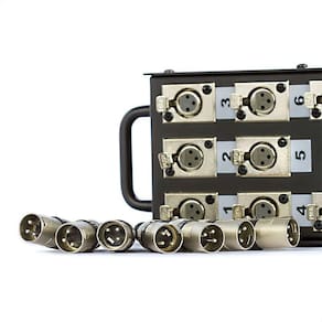 Medusa montada pela Cirilo Cabos com conectores Combo, marca própria. A vantagem do combo é poder plugar dois tipos distintos de conectores, o XLR e o P10 plug banana. Na ponta dos cabos vão conectores XLR macho. Este produto é ideal para transmissão de som profissional, sem prejuízos na qualidade ou interferência de ruídos externos.