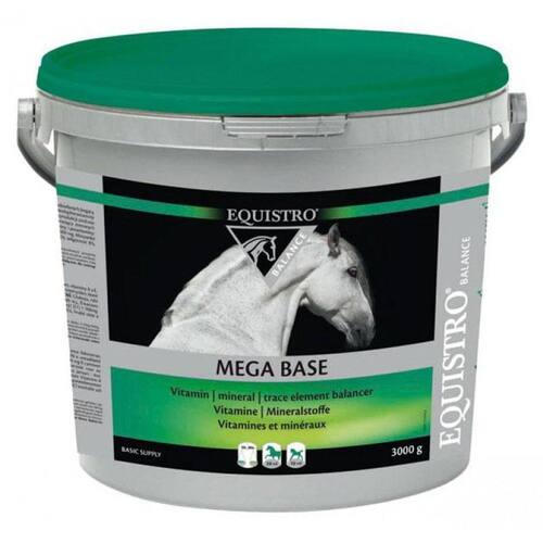Mega Base Equistro - 3 KgMega Base Equistro é um suplemento mineral vitamínico aminoácido para equinos.Mega Base Equistro é um suplemento mineral que ajuda a atender as suas necessidades de nutrientes. Contém cálcio, fósforo, vitaminas, minerais essenciais e oligoelementos com elevada biodisponibilidade, além de prebiótico.Mega Base Equistro é indicado para cavalos saudáveis, alimentados com ração rica em cereais.Modo de Usar:Cavalos 500 kg : 50g 2 colheres /diaPotros/poneis: 25g 1 colher /dia.Aplicação diária na ração / intervalo de tempoAdministrar junto com a ração.Devido a presença de minerais e vitaminas, a administração não deve exceder 350g / 500kg cavalo/dia.Fabricante: Equistro / Vetoquinol